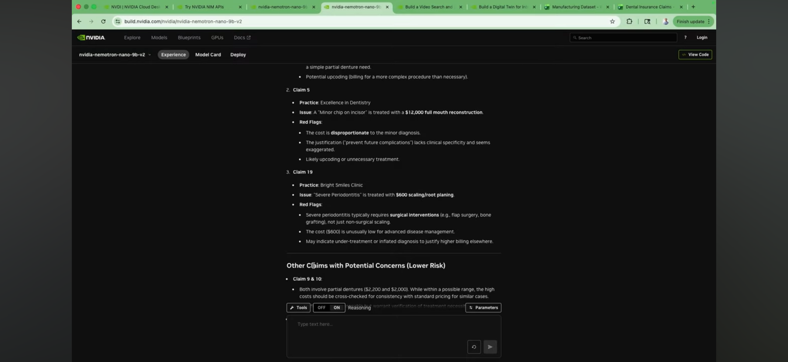 - Fraud Detection example: The AI identifies fraudulent dental insurance claims by comparing diagnoses with the typical costs of suggested treatments