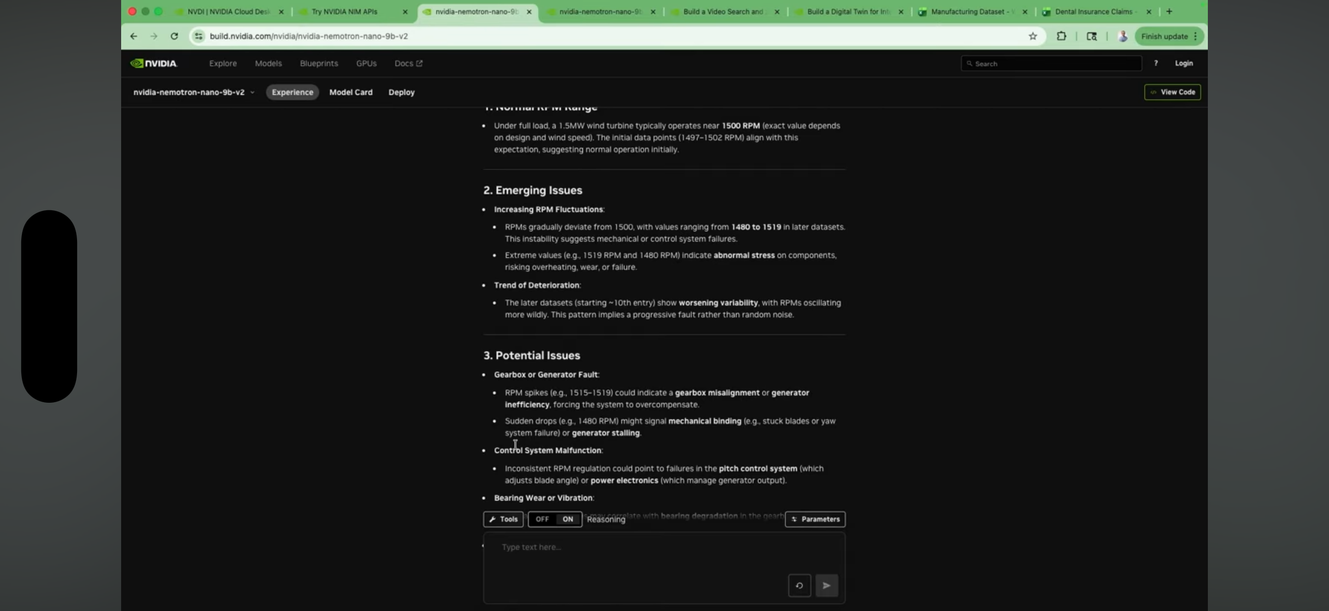 - Predictive Maintenance example: A reasoning model analyzes wind turbine data to detect potential gearbox issues or ice accumulation before a failure occurs