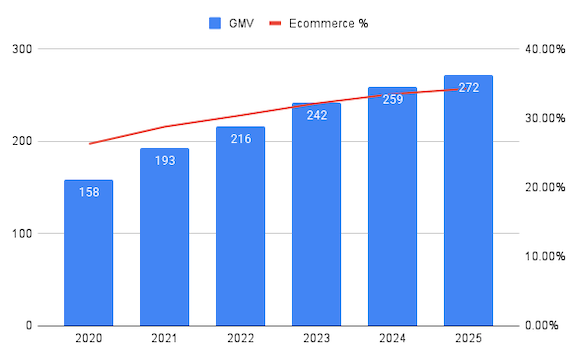 한국은 2025년 기준 온라인 거래액(GMV) 약 270조원에 달하는 세계 최대 이커머스 시장 중 하나입니다. 소비자층은 고도로 디지털화되어 있고, 당일 및 익일 배송은 표준 인프라가 되었으며 물류 네트워크는 성숙해 있습니다. 팬데믹 종료 후에도 이커머스 침투율은 계속해서 상승하고 있습니다. 물론, 단순히 빠른 이커머스 시장의 성장세와 높은 침투율만으로는 한국 애그리게이터들이 미국보다 유리한건 아니죠.